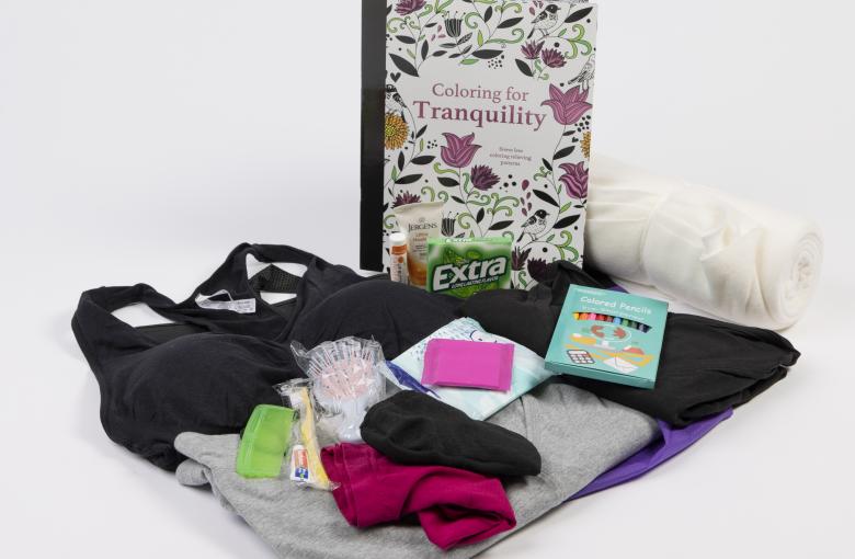 contains new comfortable clothing, undergarments and personal hygiene products –